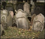 ongeveer twaalfduizend oude grafstenen schots en scheef door elkaar
